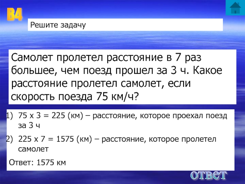225 х 7 = 1575 (км) – расстояние, которое пролетел самолет
