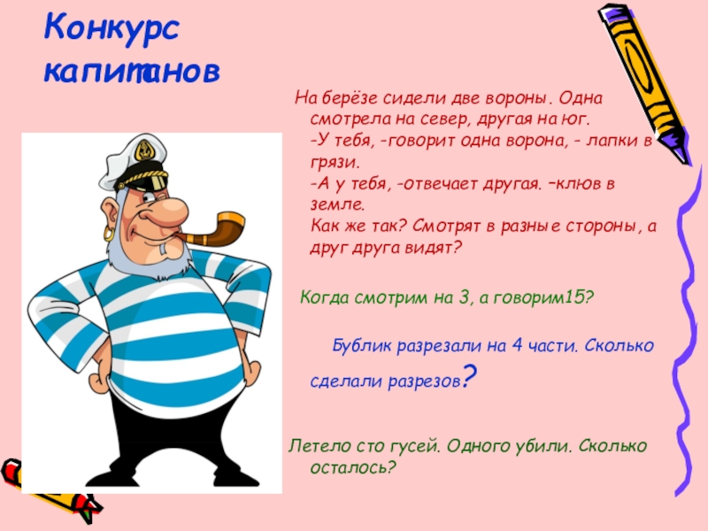 На берёзе сидели две вороны. Одна смотрела на север, другая на юг.