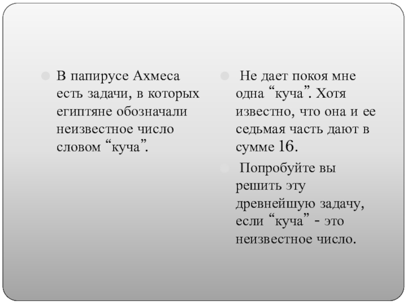 Попробуйте вы решить эту древнейшую задачу, если “куча” - это неизвестное число.
