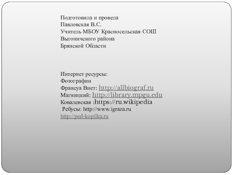 Это сайт презентаций, где можно хранить и обмениваться своими презентациями, докладами, проектами, шаблонами в формате PowerPoint с другими пользователями. Мы помогаем школьникам, студентам, учителям, преподавателям хранить и обмениваться учебными материалами.