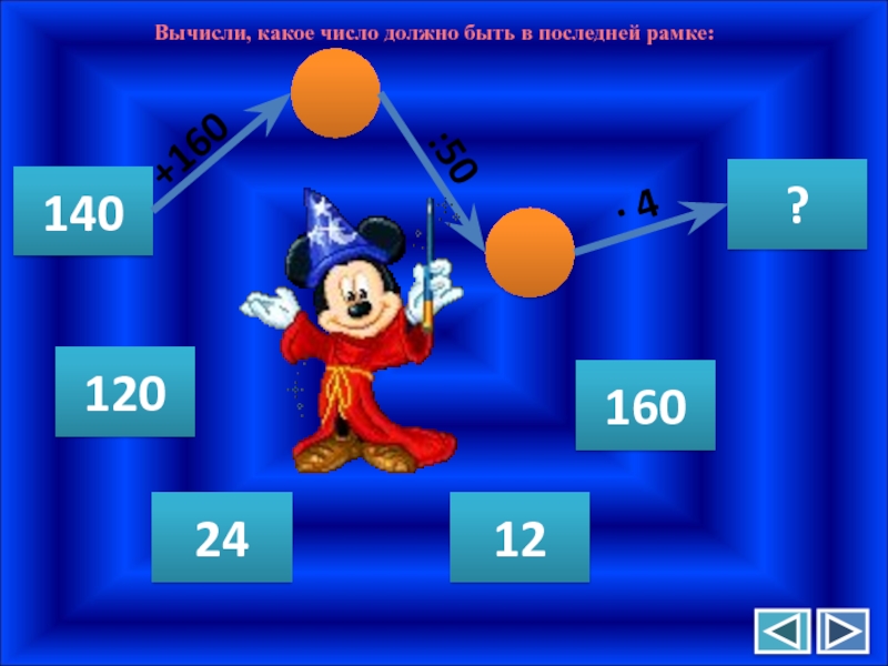 Слайд 4Вычисли, какое число должно быть в последней рамке: