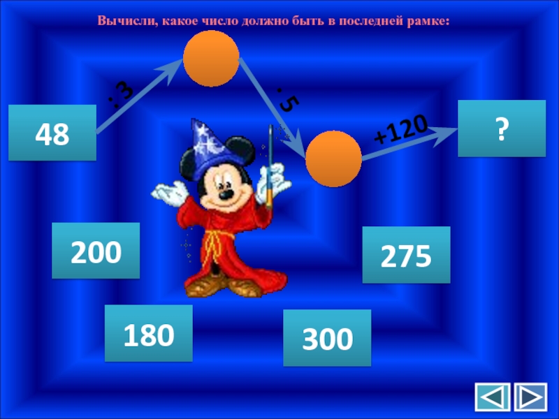 Вычисли, какое число должно быть в последней рамке:48?: 3∙ 5+120180200275300
