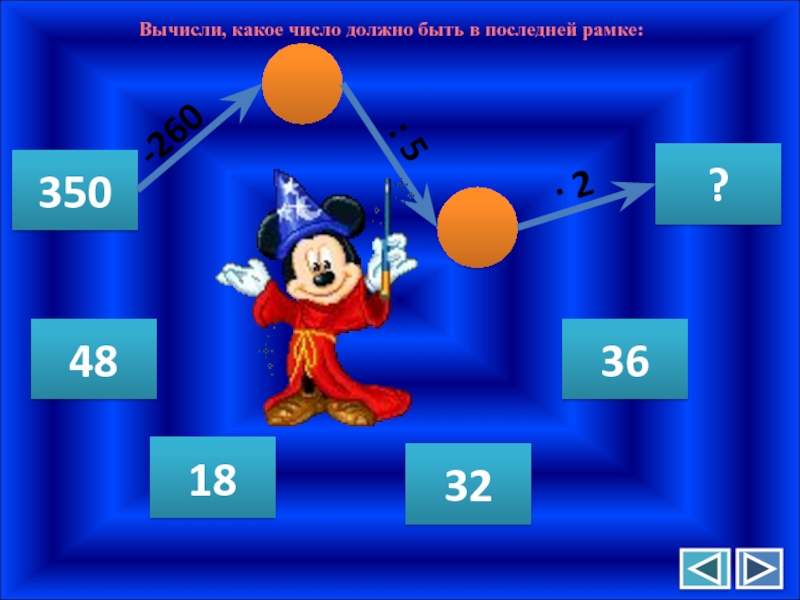 Вычисли, какое число должно быть в последней рамке:350?-260: 5∙ 218364832