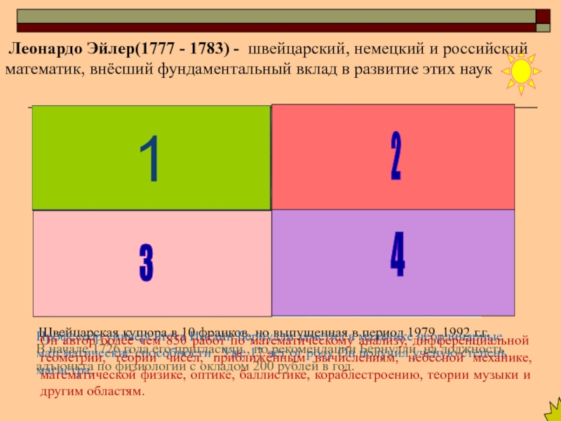 Леонардо Эйлер(1777 - 1783) - швейцарский, немецкий и российский математик, внёсший фундаментальный вклад в развитие этих наук