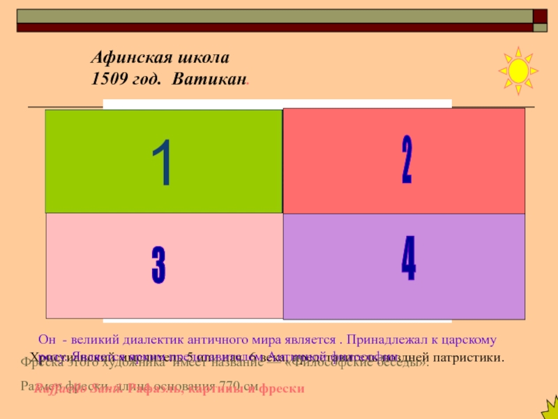 Фреска этого художника имеет название — «Философские беседы».