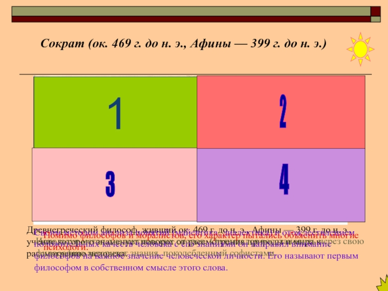 Используя метод диалектических споров, Он пытался восстановить через свою философию авторитет знания, поколебленный софистами.