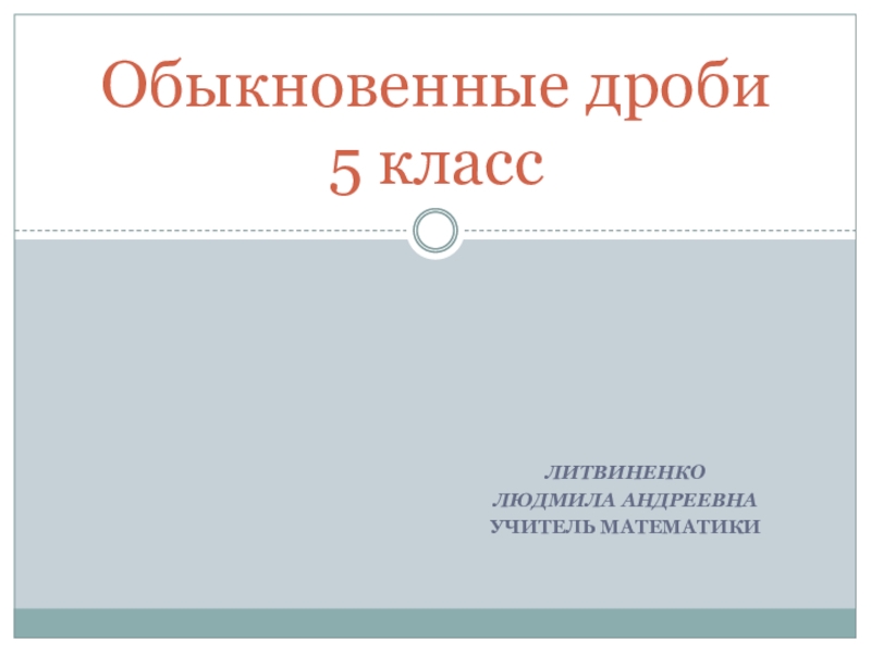 ЛитвиненкоЛюдмила АндреевнаУчитель математикиОбыкновенные дроби 5 класс
