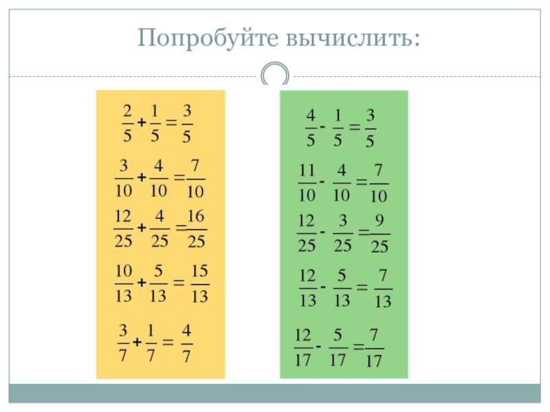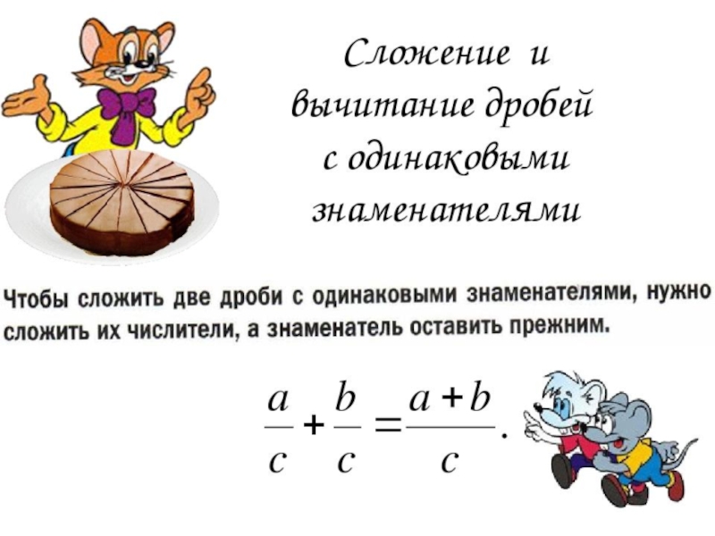 Тема урока: Сложение и вычитание дробей с одинаковыми знаменателями.