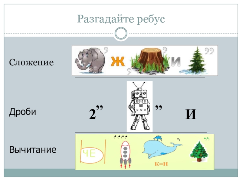 Разгадайте ребусСложение2 И,, ,, ДробиВычитание