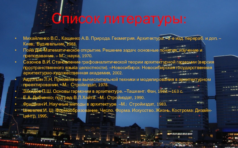Захидов П.Ш. Основы гармонии в архитектуре. –Ташкент: Фан, 1982. –163 с.
