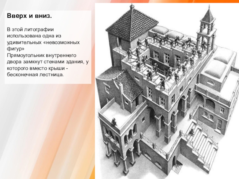В этой литографии использована одна из удивительных «невозможных фигур»