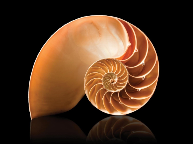 Слайд 8Форма спирально завитой раковины привлекла внимание Архимеда. Он изучал ее и