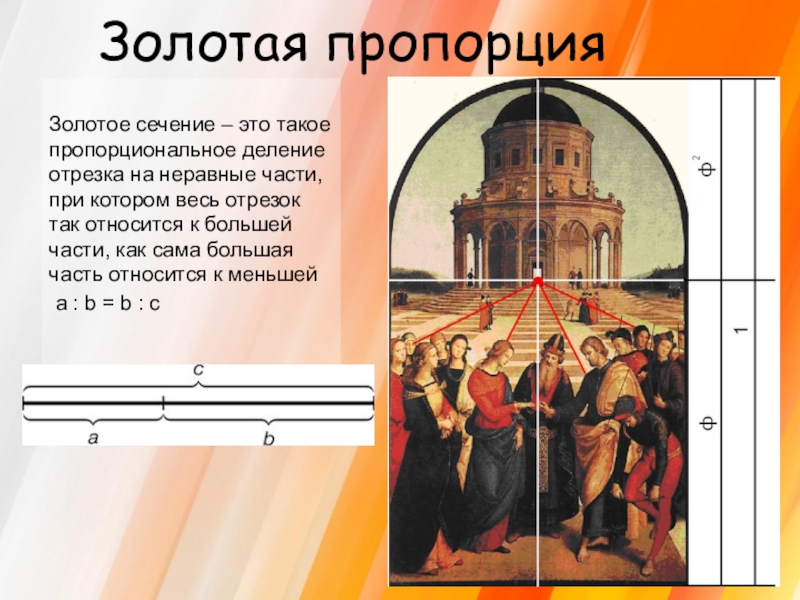 Золотое сечение – это такое пропорциональное деление отрезка на неравные части,