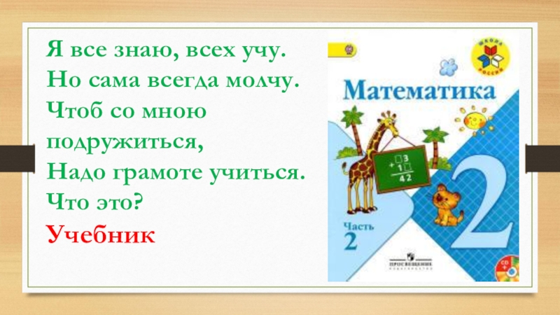 Я все знаю, всех учу. Но сама всегда молчу.Чтоб со мною подружиться,Надо грамоте учиться.Что это?Учебник