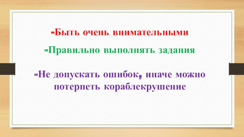 -Быть очень внимательными-Правильно выполнять задания-Не допускать ошибок, иначе можно потерпеть кораблекрушение