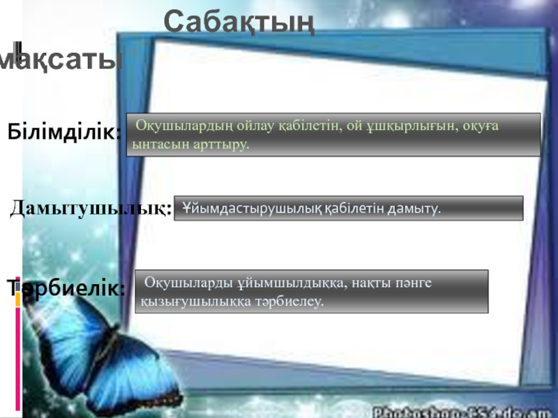 Оқушылардың ойлау қабілетін, ой ұшқырлығын, оқуға ынтасын арттыру.
