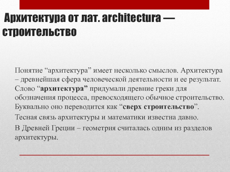 Архитектура от лат. architectura — строительство
