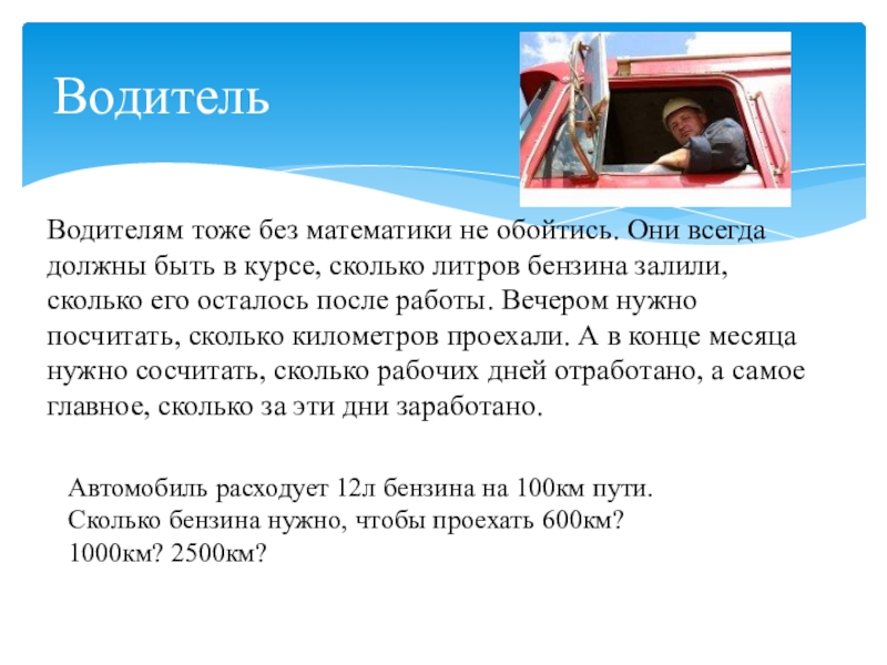 Автомобиль расходует 12л бензина на 100км пути. Сколько бензина нужно, чтобы проехать 600км? 1000км? 2500км?
