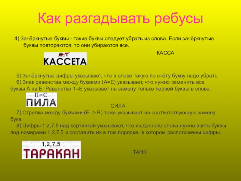 5) Зачёркнутые цифры указывают, что в слове такую по счёту букву надо убрать.