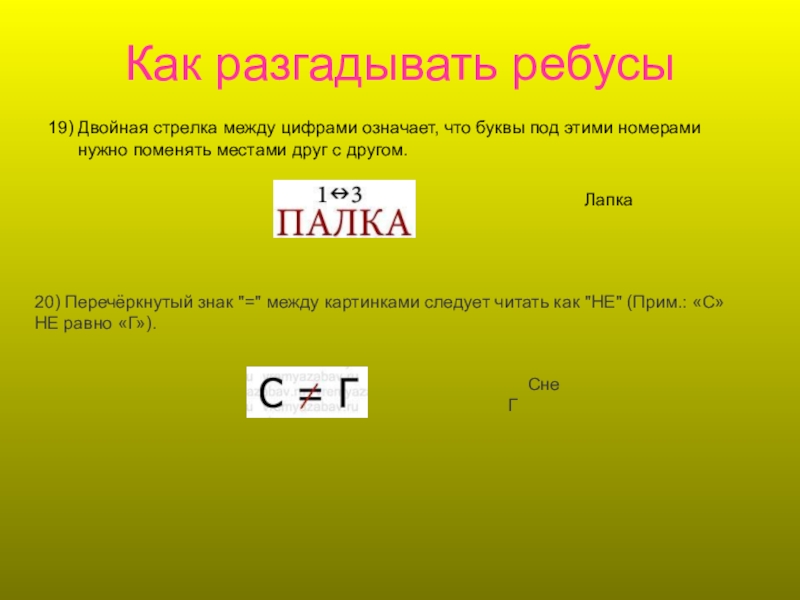 20) Перечёркнутый знак "=" между картинками следует читать как "НЕ" (Прим.: «С» НЕ равно «Г»).