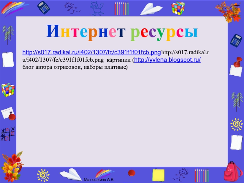 Интернет ресурсыhttp://s017.radikal.ru/i402/1307/fc/c391f1f01fcb.pnghttp://s017.radikal.ru/i402/1307/fc/c391f1f01fcb.png картинки (http://yvlena.blogspot.ru/ блог автора отрисовок, наборы платные)