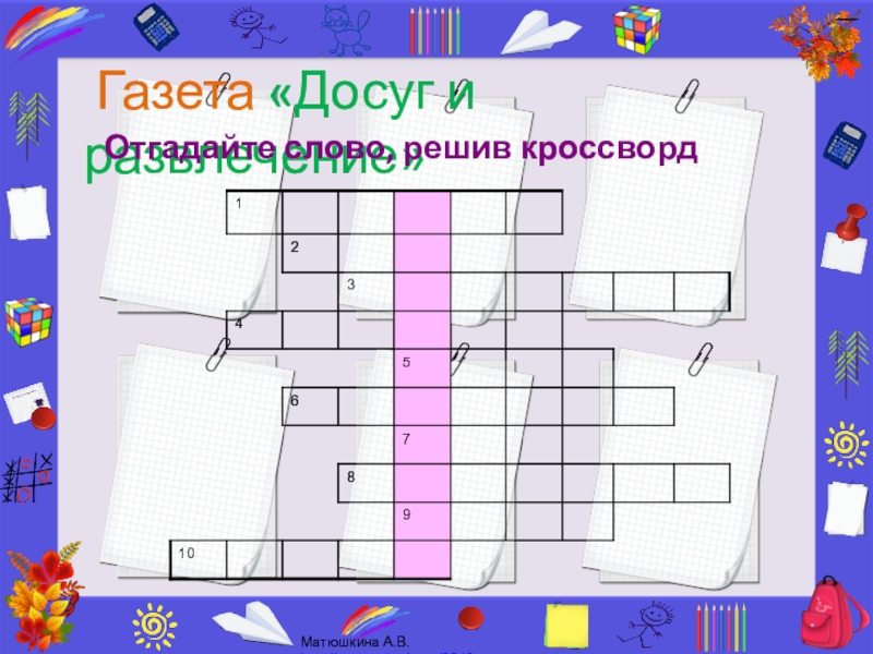 Газета «Досуг и развлечение»Отгадайте слово, решив кроссворд