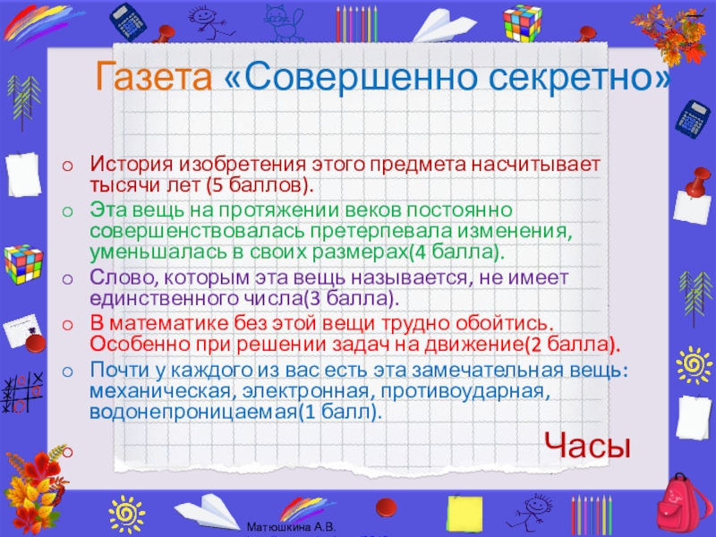 Почти у каждого из вас есть эта замечательная вещь: механическая, электронная, противоударная, водонепроницаемая(1 балл).