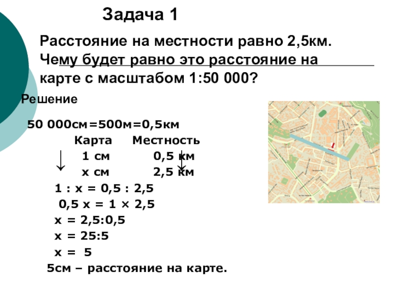 Чему будет равно это расстояние на карте с масштабом 1:50 000?
