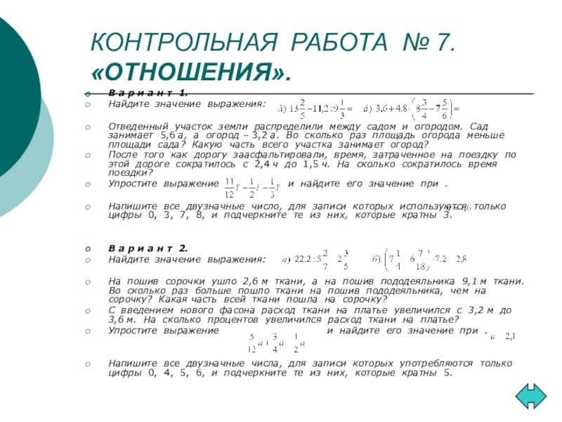 «Отношения и пропорции»