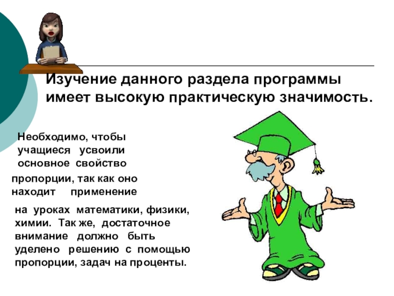 на уроках математики, физики, химии. Так же, достаточное внимание должно быть уделено решению с помощью пропорции, задач на проценты.