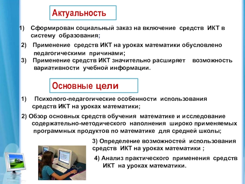 Применение средств ИКТ на уроках математики обусловлено