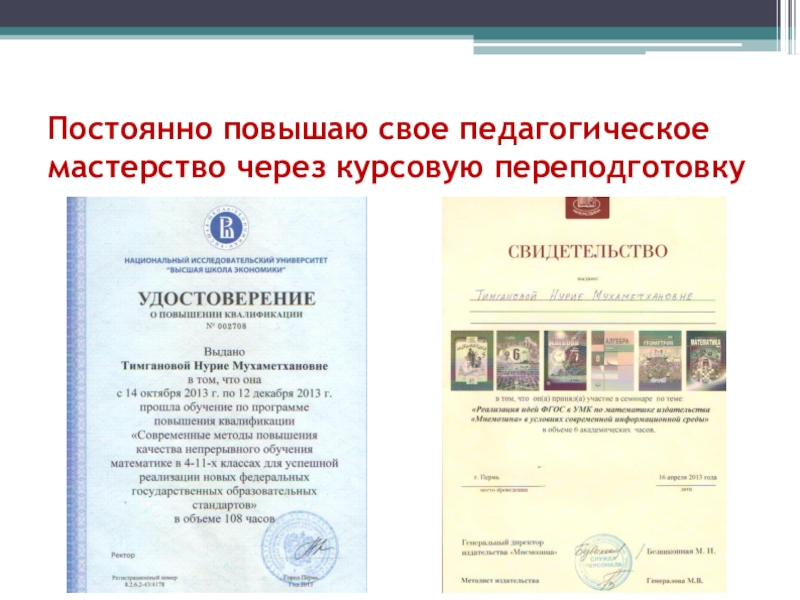 Слайд 27Постоянно повышаю свое педагогическое мастерство через курсовую переподготовку