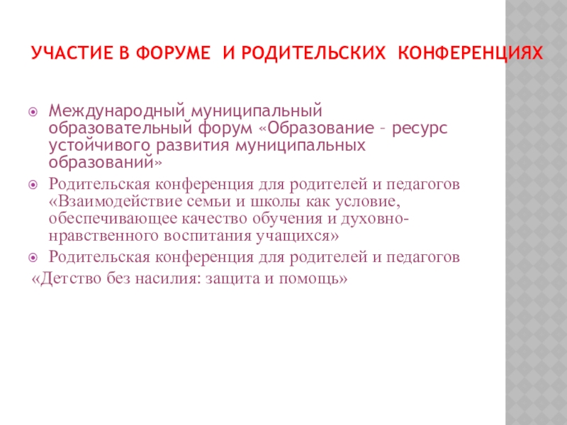 Слайд 26УЧАСТИЕ В ФОРУМЕ И РОДИТЕЛЬСКИХ КОНФЕРЕНЦИЯХ