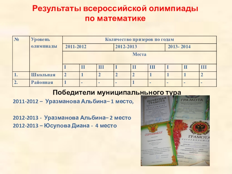 по различным параметрам: активное участие и победа во всероссийских и международных конкурсах по математике