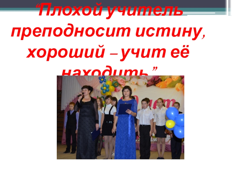 Слайд 34“Плохой учитель преподносит истину, хороший – учит её находить”