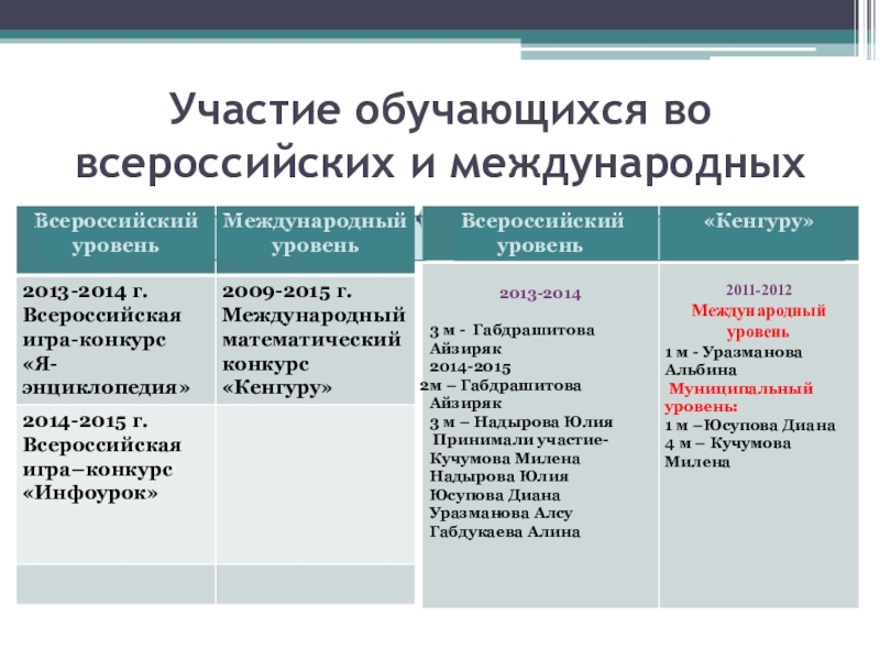 Слайд 16Участие обучающихся во всероссийских и международных конкурсах