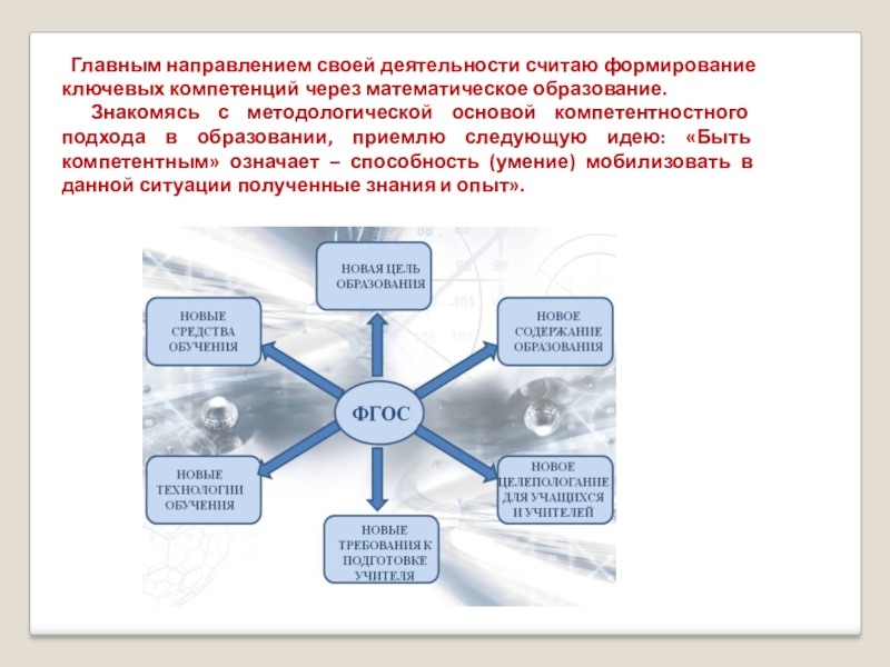 Слайд 6 Главным направлением своей деятельности считаю формирование ключевых компетенций через математическое