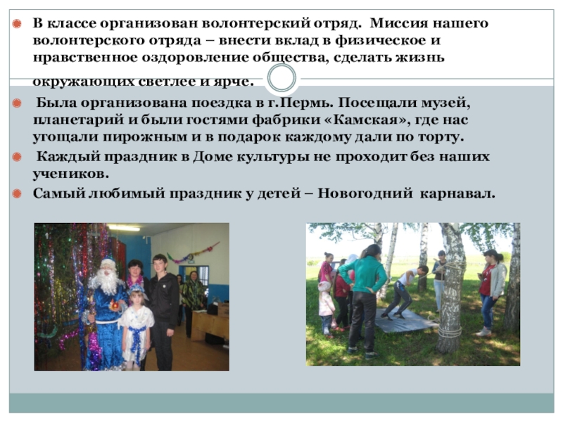 Слайд 21В классе организован волонтерский отряд. Миссия нашего волонтерского отряда – внести