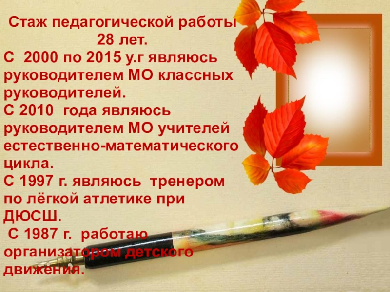 С 2010 года являюсь руководителем МО учителей естественно-математического цикла.