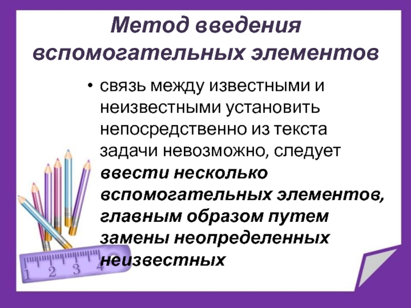 текста задачи невозможно, следует ввести несколько вспомогательных элементов, главным образом путем замены неопределенных неизвестных