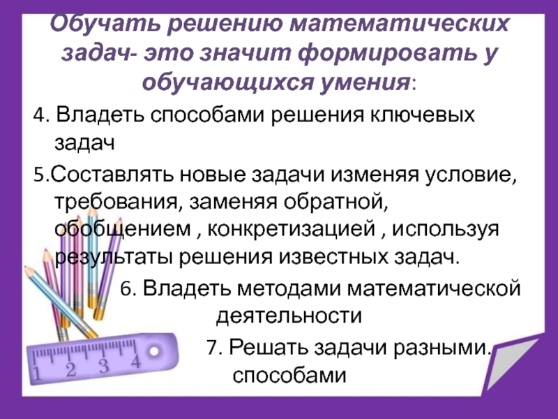 Слайд 18Обучать решению математических задач- это значит формировать у обучающихся умения: