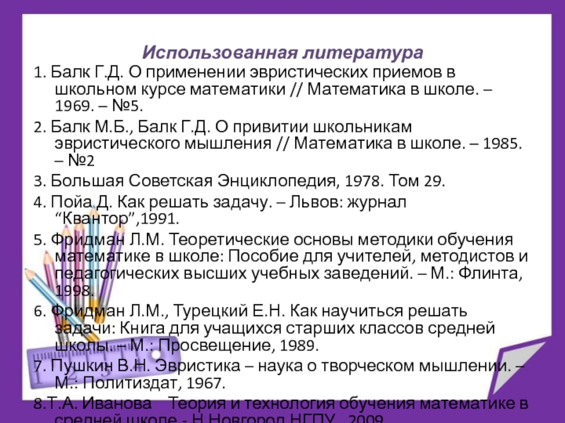 1. Балк Г.Д. О применении эвристических приемов в школьном курсе