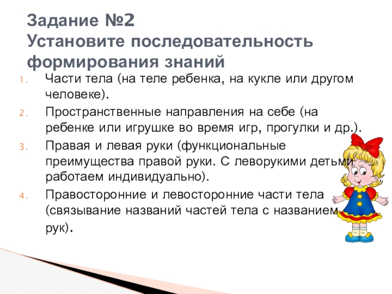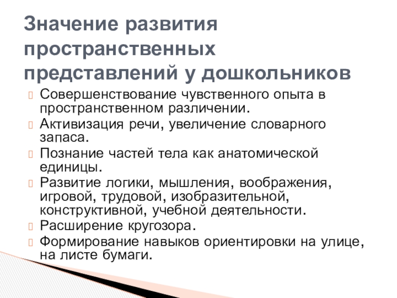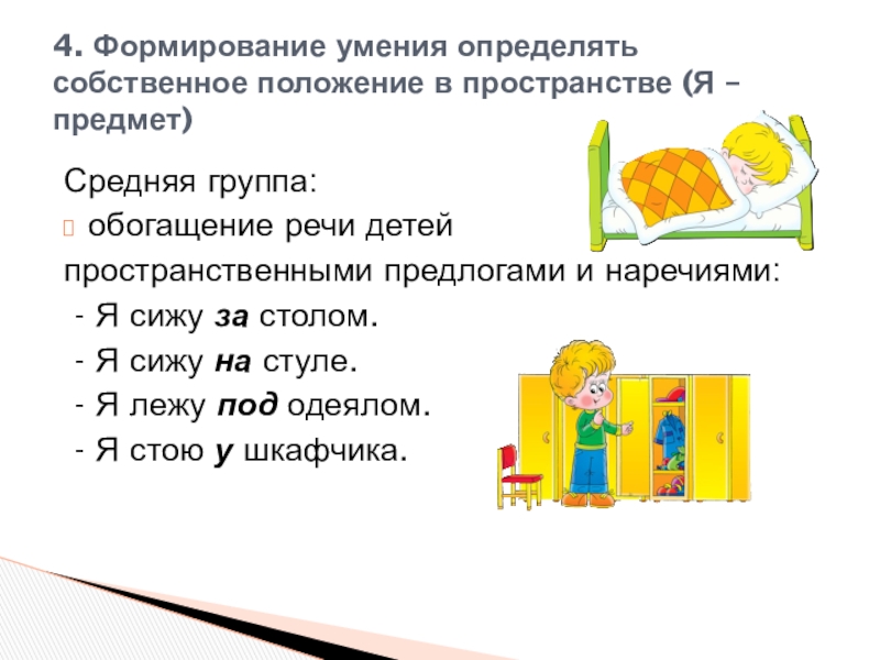 4. Формирование умения определять собственное положение в пространстве (Я – предмет)