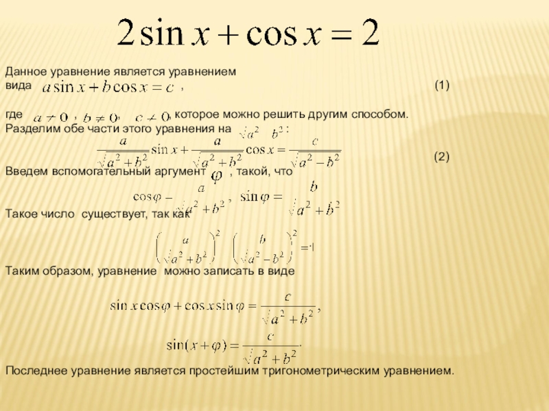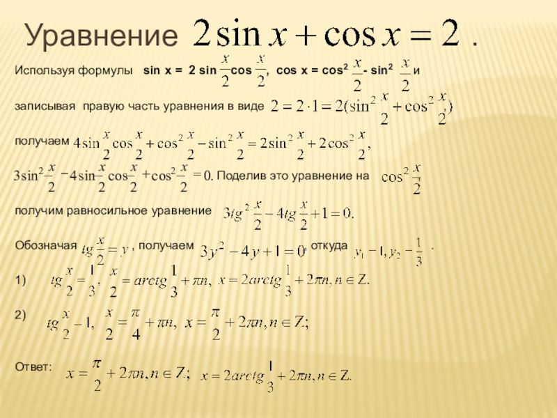 уравнения , где , , на (или ) получаем уравнение, равносильное данному.
