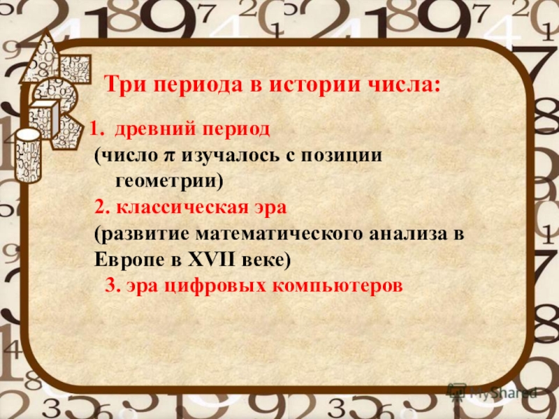 Слайд 5Три периода в истории числа:
