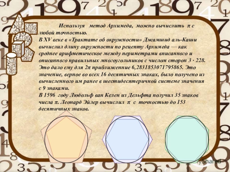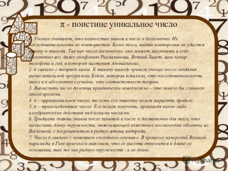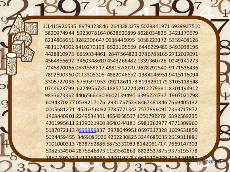 Слайд 113,1415926535 8979323846 2643383279 5028841971 6939937510