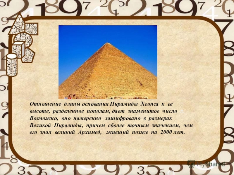 Слайд 18Отношение длины основания Пирамиды Хеопса к ее