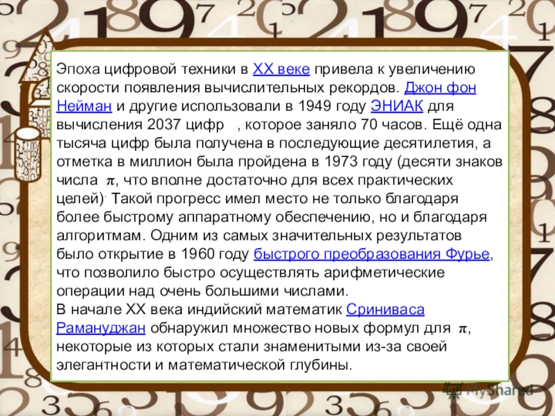 Слайд 10Эпоха цифровой техники в XX веке привела к увеличению скорости появления вычислительных рекордов. Джон