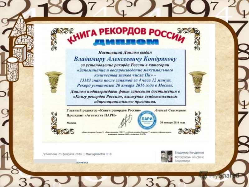 сумел назвать по памяти 42 195 знаков после запятой.