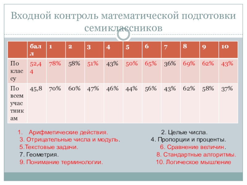 7. Геометрия. 8. Стандартные алгоритмы. 9. Понимание терминологии. 10. Логическое мышление